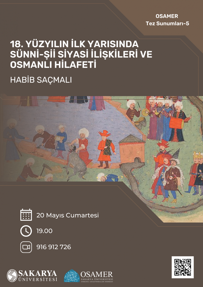 OSAMER Tez Sunumları serisinin beÅŸincisi seminerinde Baki Tezcan danışmanlığında University of California, Davis, Tarih Bölümü'nde tamamladığı "18. Yüzyılın İlk Yarısında Sünni-Åžii Siyasi İliÅŸkileri ve Osmanlı Hilafeti" baÅŸlıklı sunumuyla Dr. Habib Saçmalı'yı ağırlıyoruz.