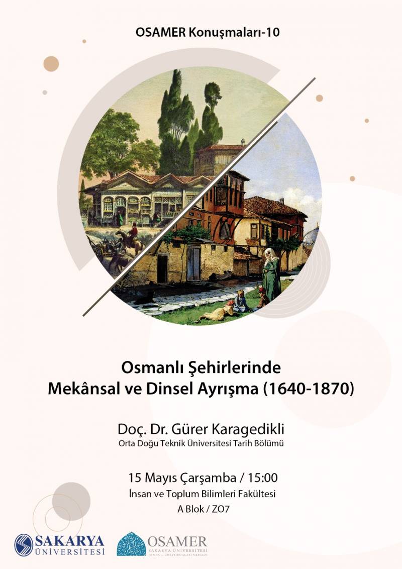 OSAMER KonuÅŸmaları'nın onuncu seminerinde ODTÜ Tarih Bölümü'nden Doç. Dr. Gürer Karagedikli'yi ağırlıyoruz. Seminerde, Osmanlı ÅŸehirlerindeki mikro-mahalle düzeyindeki mekânsal ayrışma, ÅŸer'iyye mahkemeleri kayıtlarından elde edilen verilerle yapılan analizler ve dini grupların yoÄŸunlaÅŸtığı bölgelerin detaylı incelenmesi konuları ele alınacak.